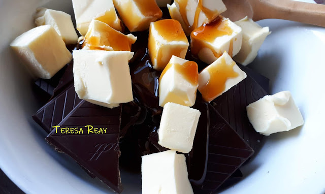 Chop the chocolate into 3cm pieces. Put the chocolates, the butter, golden syrup and salt into a large heatproof bowl set over a saucepan of gently simmering water (taking care that the base of the bowl is not touching the surface of the water).