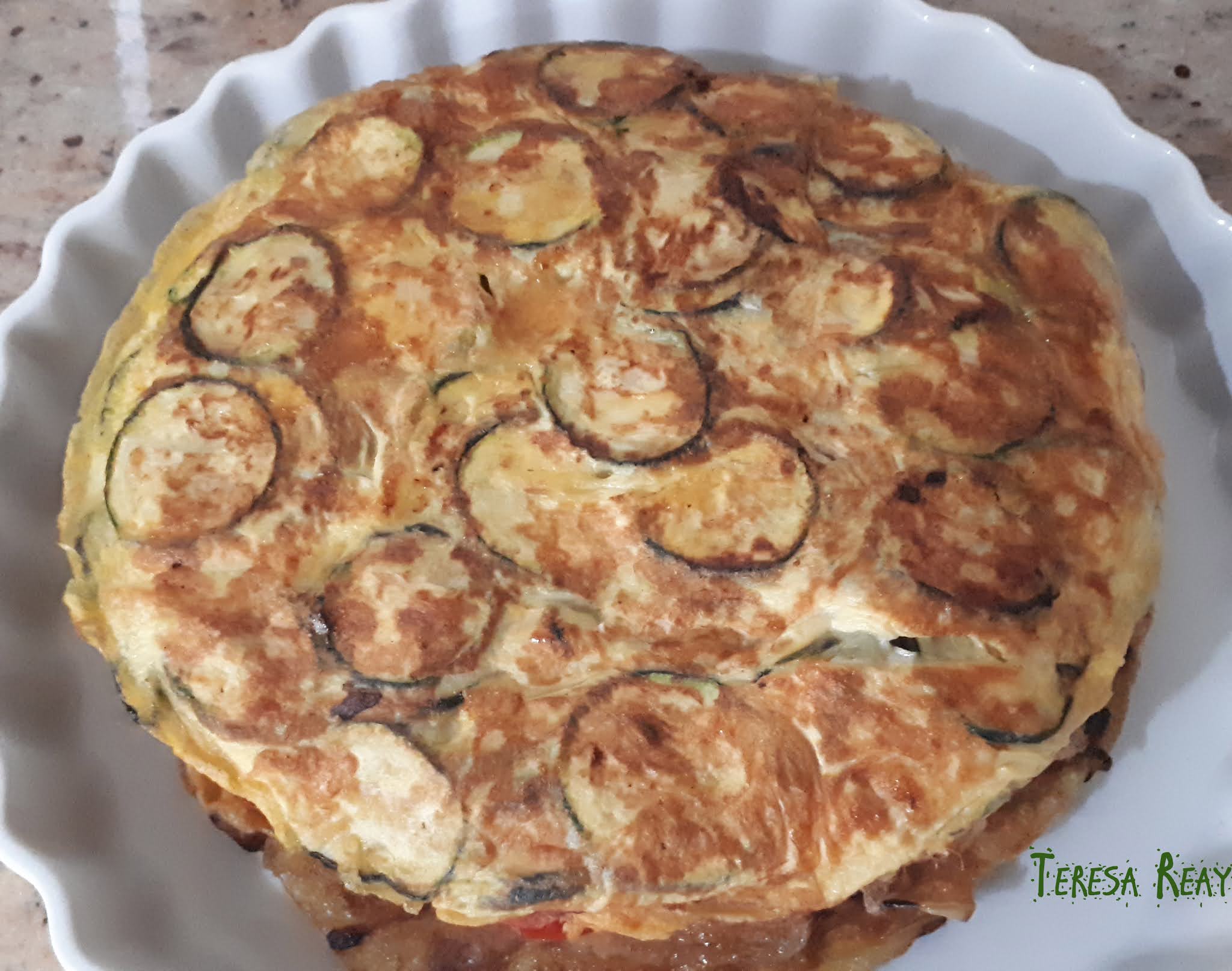 Our dinner last night was 'Pastis de truites' - Omelette cake. It is another very delicious Catalan recipe that we used to eat on our Sunday lunches. I have adapted it a bit to make it healthier, and have cooked the vegetables in an air-fryer, so they are not as oily. Also, the traditional recipe from a cookbook that has been used in my family for two generations and that I now have, mixes the bechamel sauce with cooked monkfish and scampi. It's very hard to get these two ingredients where we live, so I used cooked prawns instead and put them whole in between the omelettes. It was really delicious, and quite simple and easy to make. Certainly a weekend dish, though, because it takes a while to prepare.